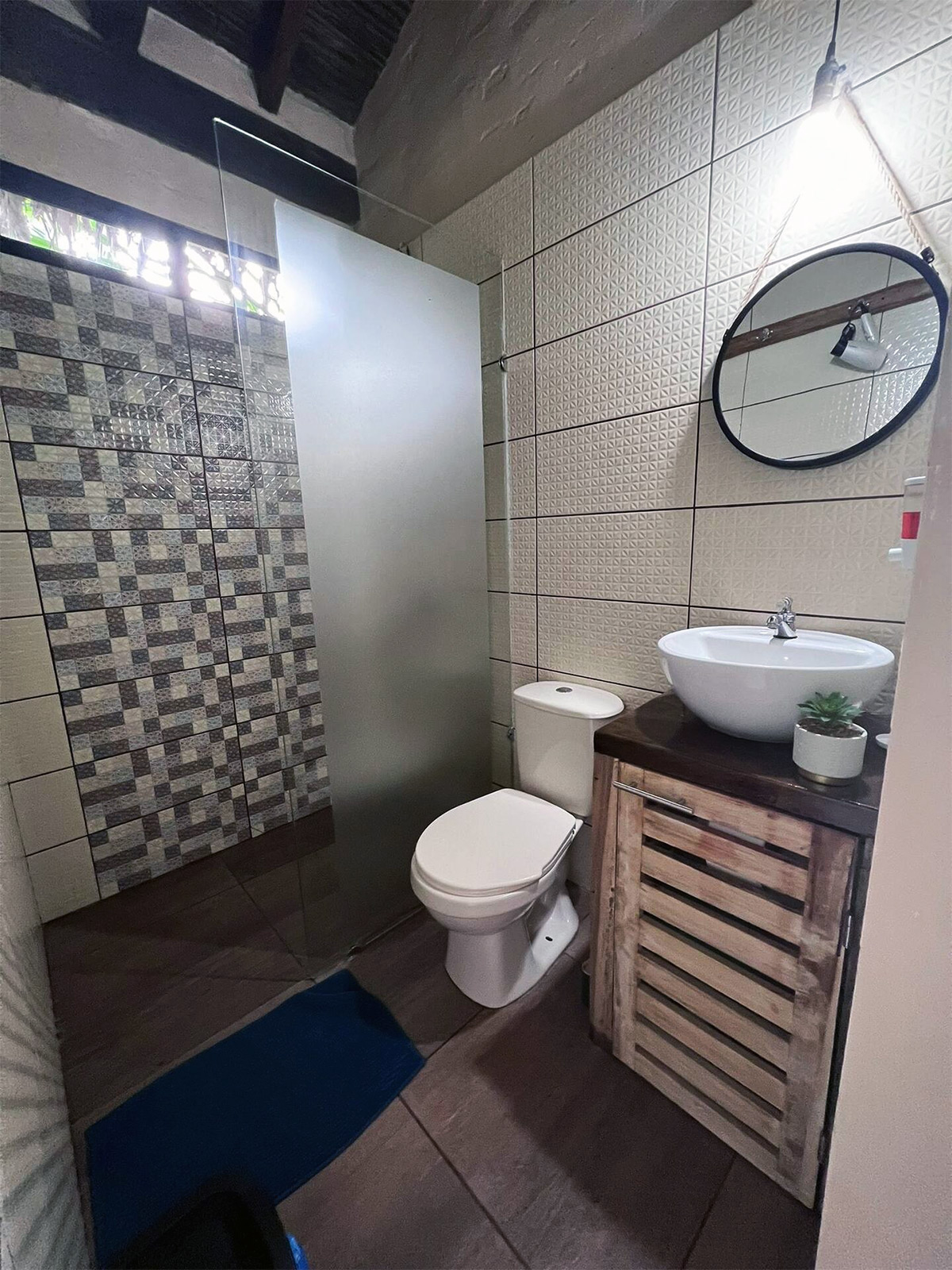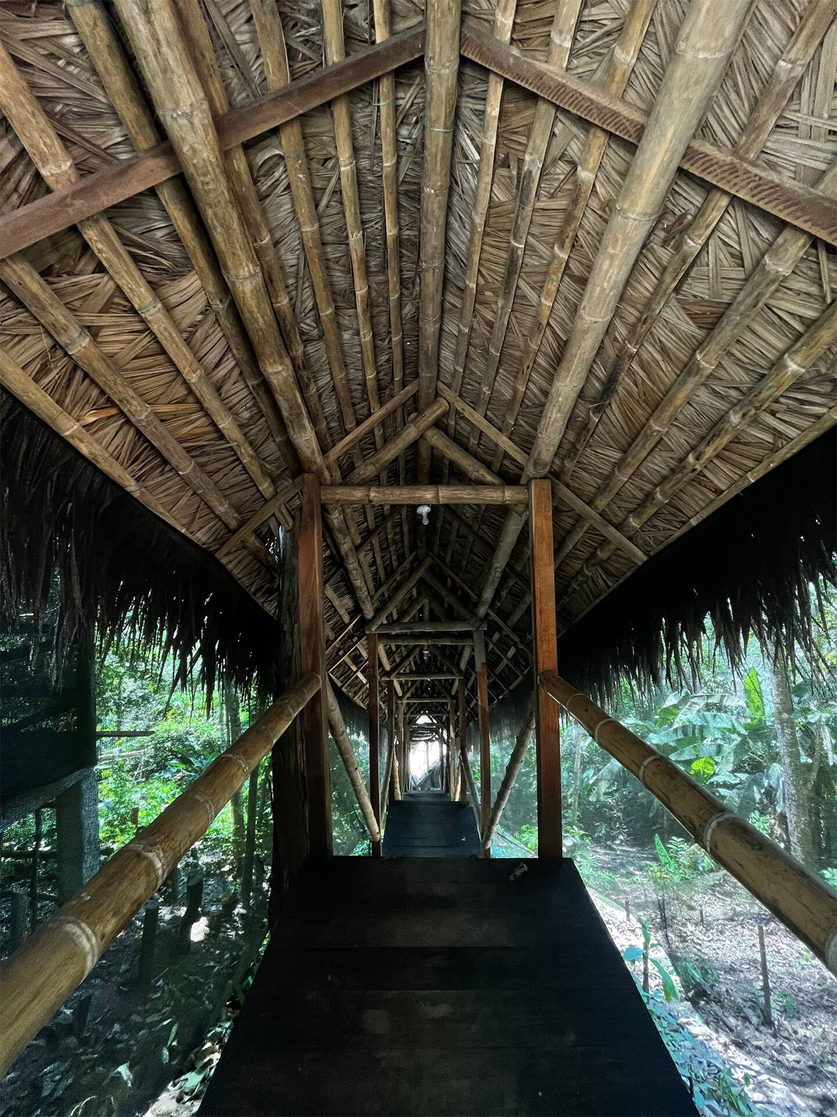 El acceso por un puente de bambú/madera con 54 escalones añade un toque de aventura y exclusividad, haciendo que tu llegada sea toda una experiencia.